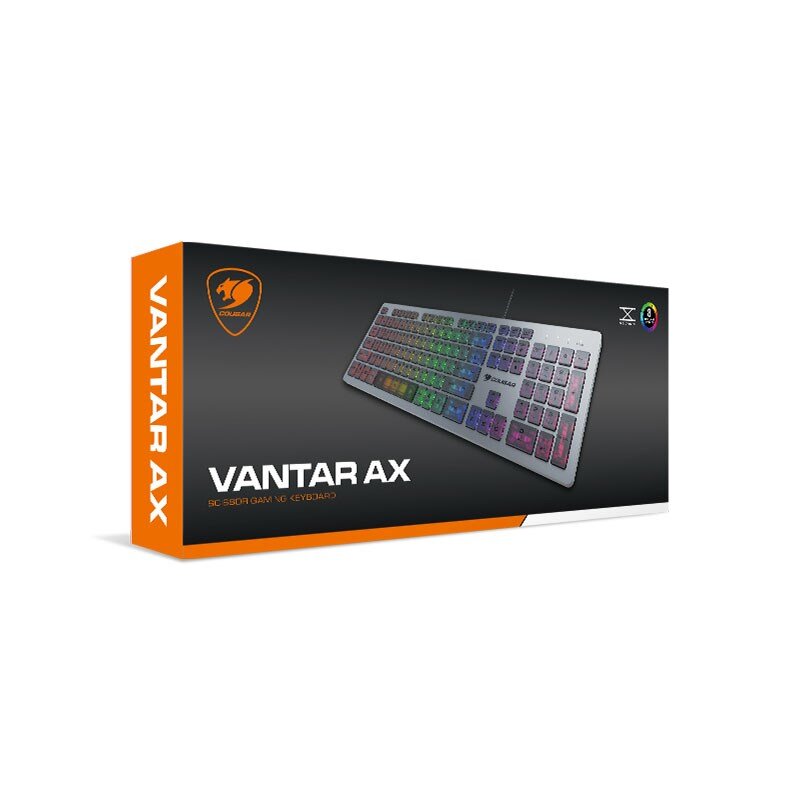 Cougar gaming keyboard VANTAR AX has a sophisticated aluminium appearance with a variety of RGB light effects, As a new generation of esports keyboards. It’s equipped with slick scissor-switches that brings users a superior response for a great gaming user experience. Scissor-switch mechanism and flat keycaps deliver a refined typing experience. 19-Key Rollover Anti-Ghosting technology.